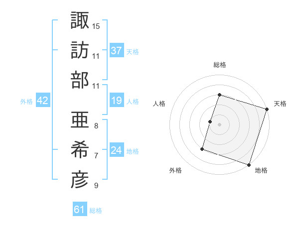 諏訪部 亜希彦さんを姓名の画数から五運を鑑定