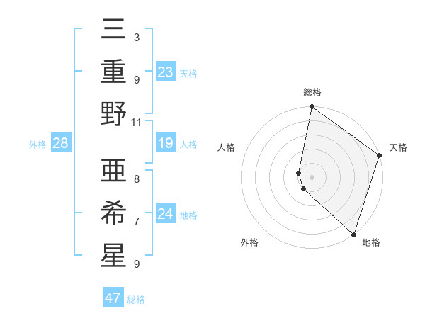 三重野 亜希星さんを姓名の画数から五運を鑑定