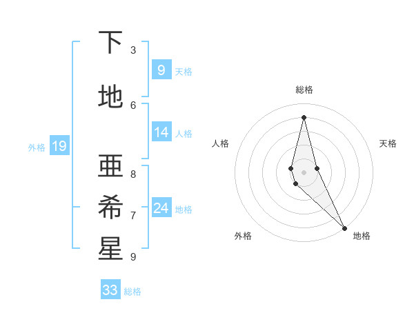 下地 亜希星さんの総格は33画の4点!