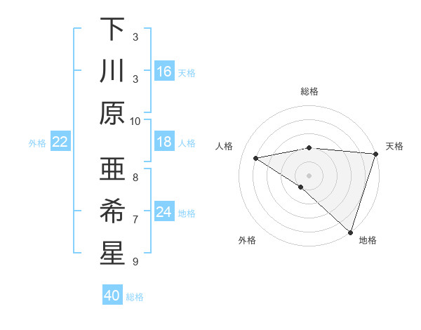 下川原 亜希星さんを姓名の画数から五運を鑑定