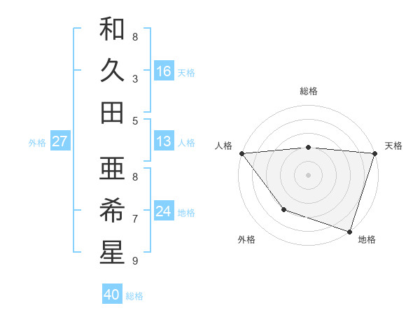 和久田 亜希星さんの天格は16画の5点!