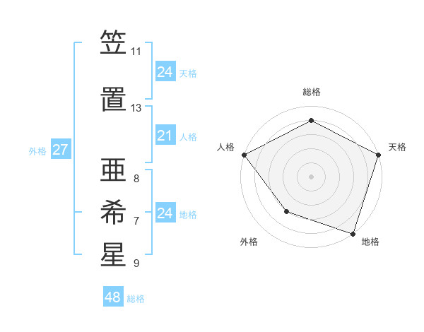 笠置 亜希星さんを姓名の画数から五運を鑑定