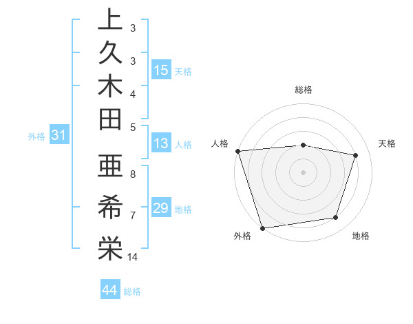 上久木田 亜希栄さんの天格は15画の4点!