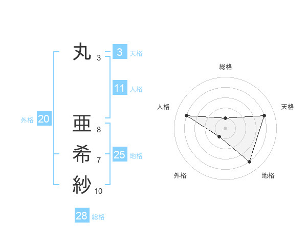 丸 亜希紗さんを姓名の画数から五運を鑑定