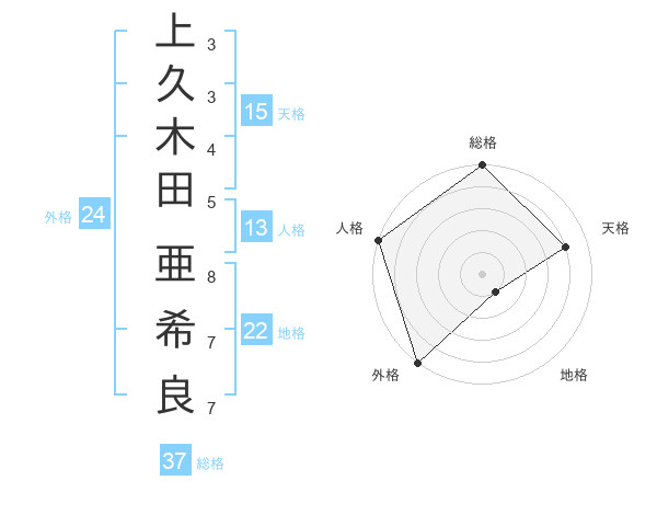 上久木田 亜希良さんの天格は15画の4点!