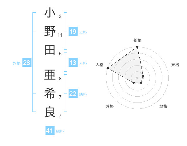 小野田 亜希良さんを姓名の画数から五運を鑑定