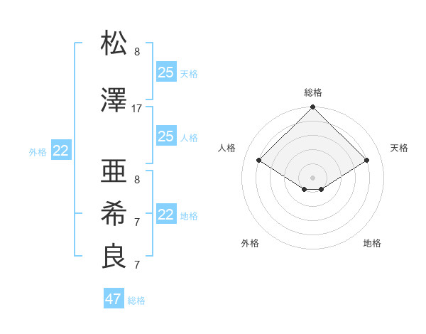 松澤 亜希良さんの天格は25画の4点!