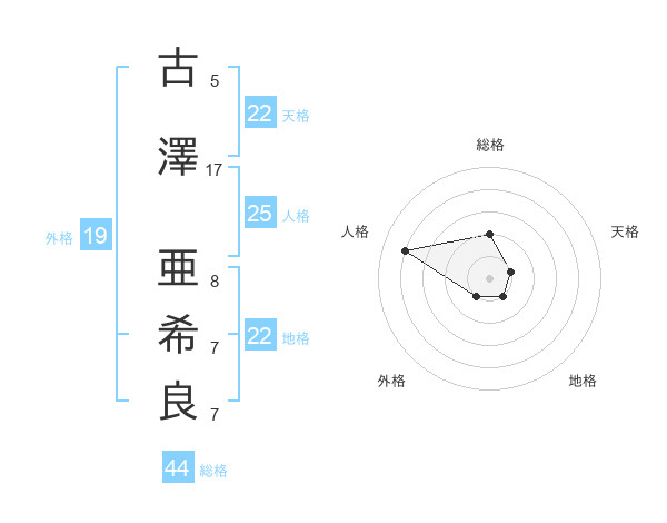 古澤 亜希良さんの地格は22画の1点!
