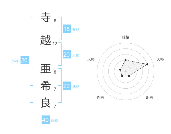 寺越 亜希良さんを姓名の画数から五運を鑑定