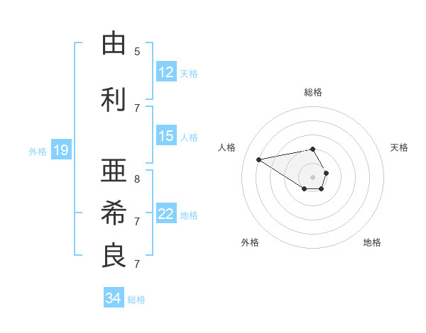 由利 亜希良さんの総格は34画の2点!
