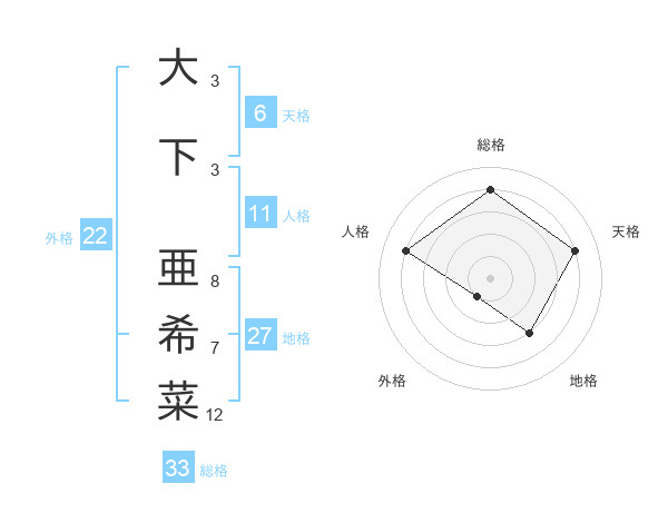大下 亜希菜さんを姓名の画数から五運を鑑定