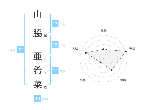 山脇 亜希菜さんを姓名の画数から五運を鑑定