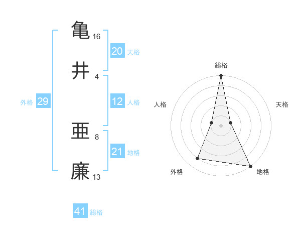 亀井 亜廉さんの総格は41画の5点!