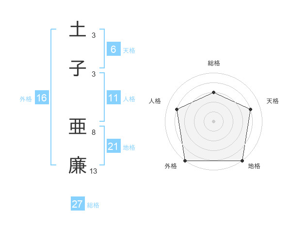 土子 亜廉さんの総格は27画の3点!