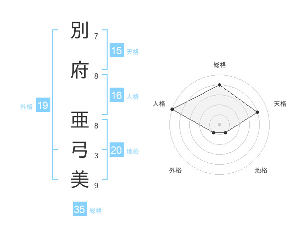 別府 亜弓美さんを姓名の画数から五運を鑑定