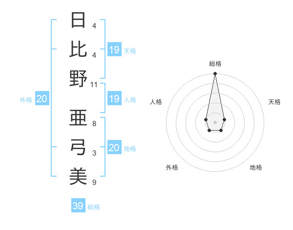 日比野 亜弓美さんを姓名の画数から五運を鑑定