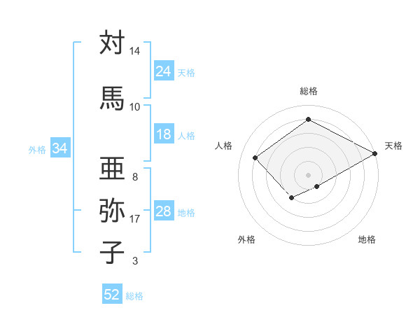 対馬 亜弥子さんを姓名の画数から五運を鑑定