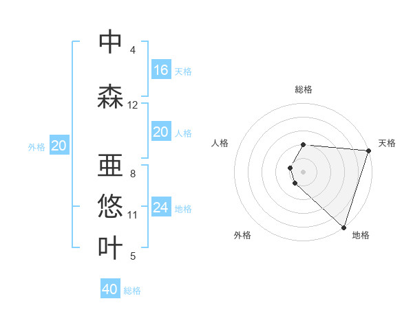 中森 亜悠叶さんの総格は40画の2点!