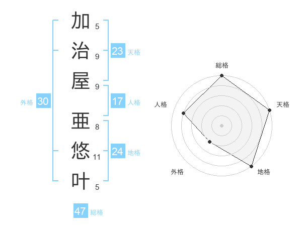 加治屋 亜悠叶さんの総格は47画の5点