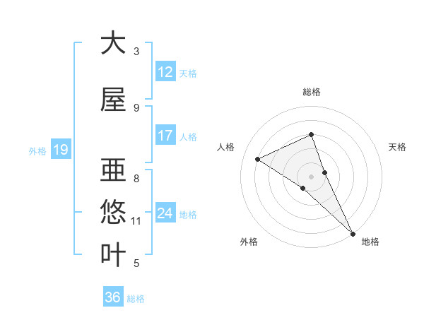 大屋 亜悠叶さんの地格は24画の5点!