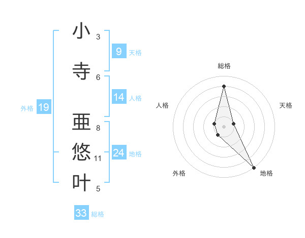 小寺 亜悠叶さんの総格は33画の4点!