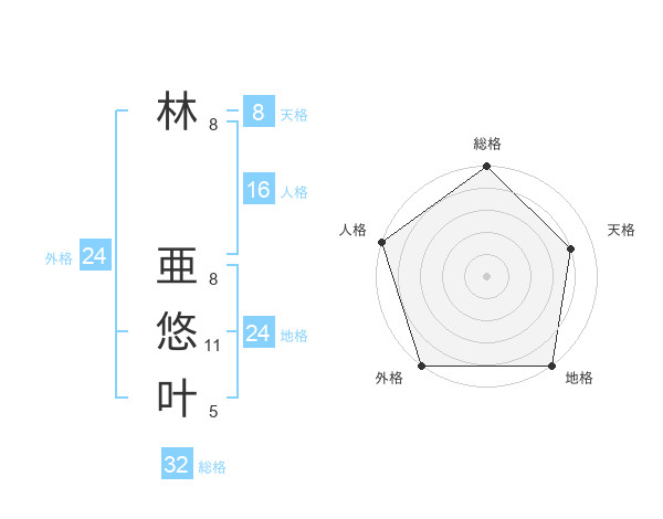 林 亜悠叶さんを姓名の画数から五運を鑑定