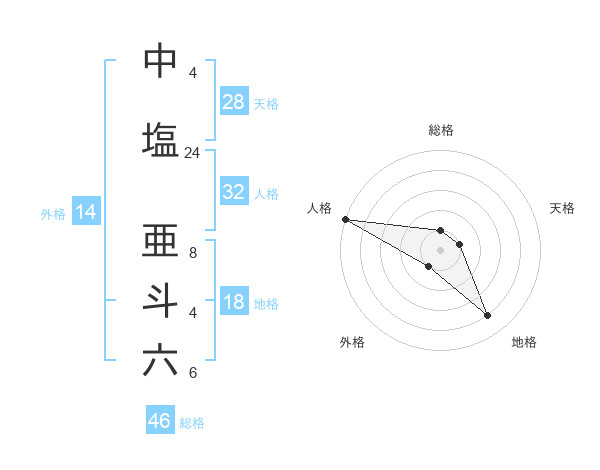 中塩 亜斗六さんの総格は46画の1点!