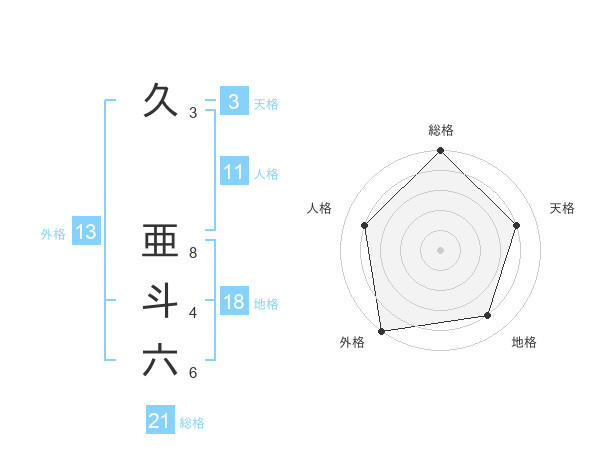 久 亜斗六さんの総格は21画の5点!