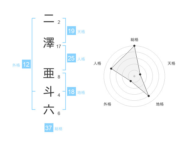 二澤 亜斗六さんを姓名の画数から五運を鑑定