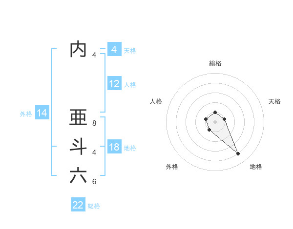 内 亜斗六さんの総格は22画の1点!