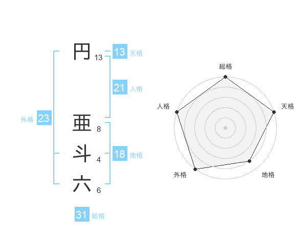 円 亜斗六さんの外格は23画の5点!