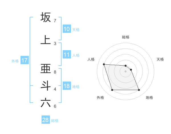 坂上 亜斗六さんを姓名の画数から五運を鑑定