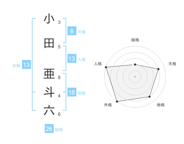 小田 亜斗六さんの外格は13画の5点!