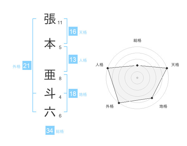 張本 亜斗六さんの外格は21画の5点!