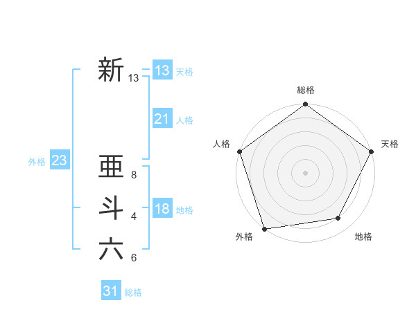 新 亜斗六さんを姓名の画数から五運を鑑定