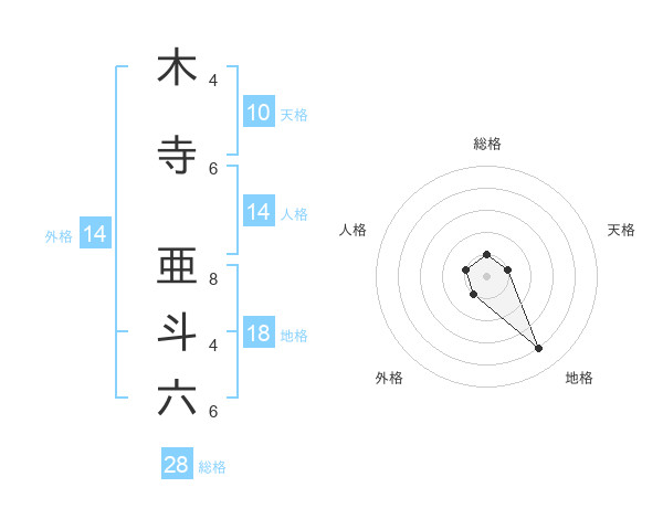 木寺 亜斗六さんの総格は28画の1点!