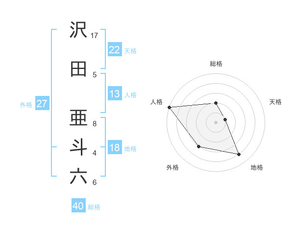 沢田 亜斗六さんを姓名の画数から五運を鑑定