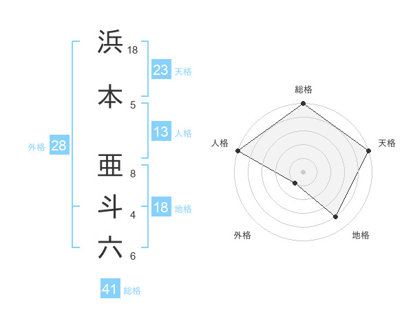 浜本 亜斗六さんを姓名の画数から五運を鑑定