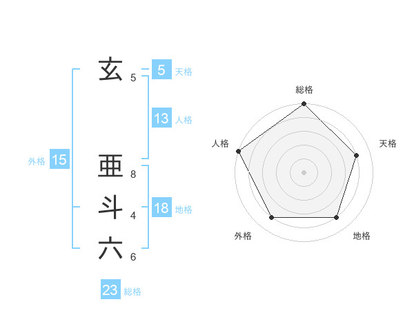 玄 亜斗六さんの総格は23画の5点!