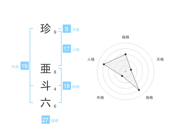 珍 亜斗六さんの地格は18画の4点!