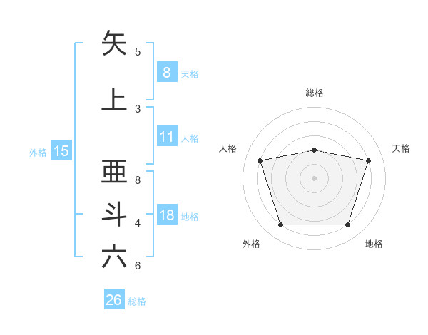 矢上 亜斗六さんを姓名の画数から五運を鑑定
