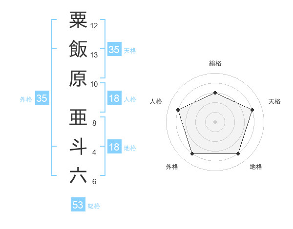 粟飯原 亜斗六さんを姓名の画数から五運を鑑定