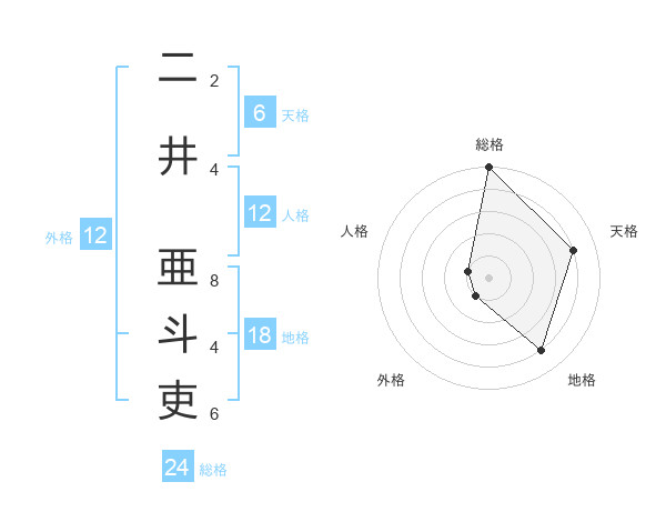 二井 亜斗吏さんの外格は12画の1点!