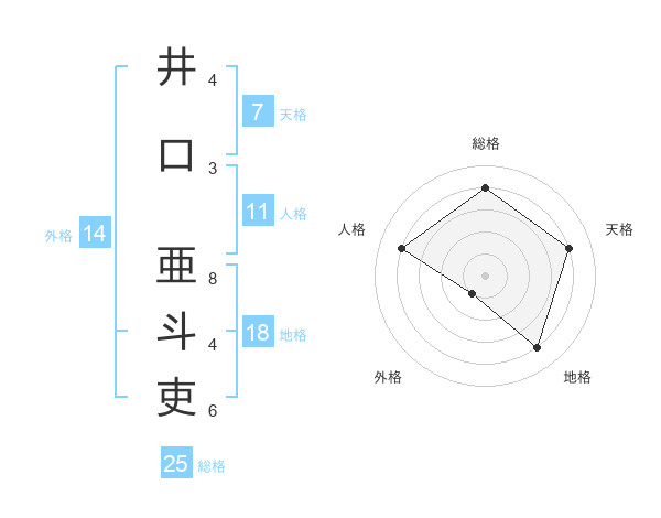 井口 亜斗吏さんの総格は25画の4点!