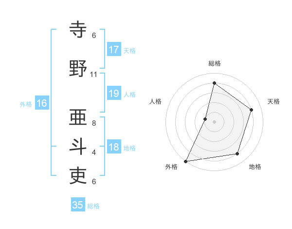 寺野 亜斗吏さんを姓名の画数から五運を鑑定