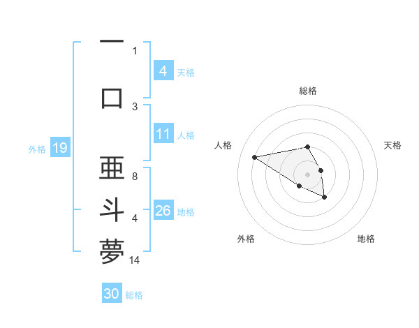 一口 亜斗夢さんの天格は4画の1点!