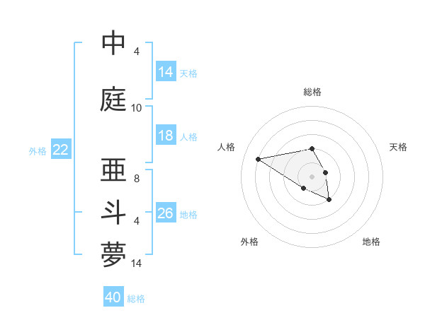 中庭 亜斗夢さんの外格は22画の1点!