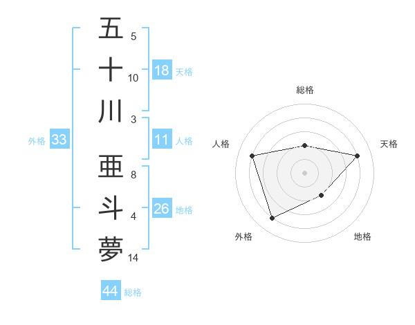 五十川 亜斗夢さんを姓名の画数から五運を鑑定