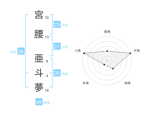 宮腰 亜斗夢さんの総格は49画の2点!