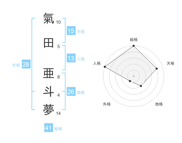 氣田 亜斗夢さんの総格は41画の5点!
